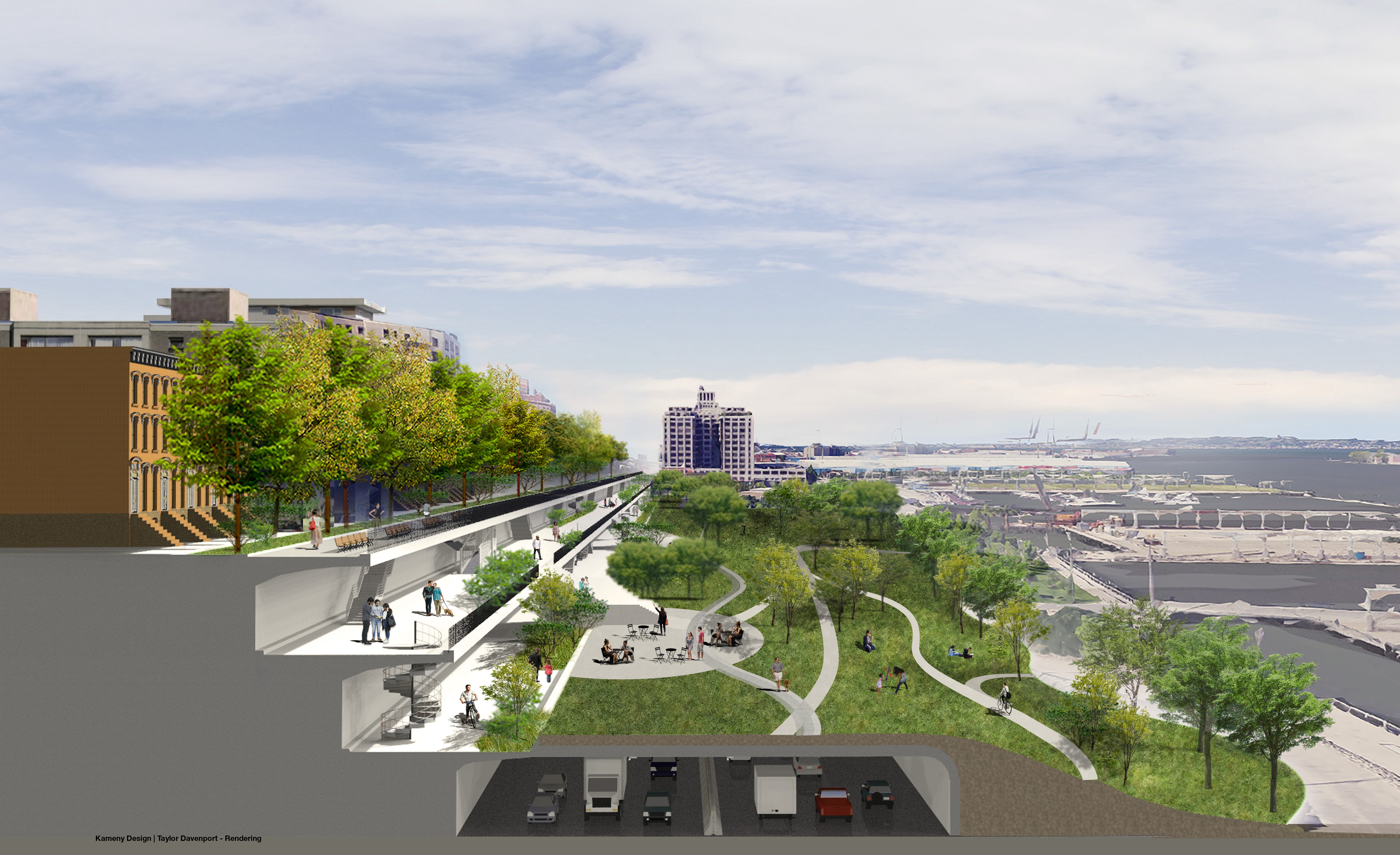 - These levels will be connected to each other, to the Promenade above and to the Park below, through stairways, escalators, elevators and slides (and anything else the designers come up with) improving access to the Park from Brooklyn Heights and Downtown Brooklyn.