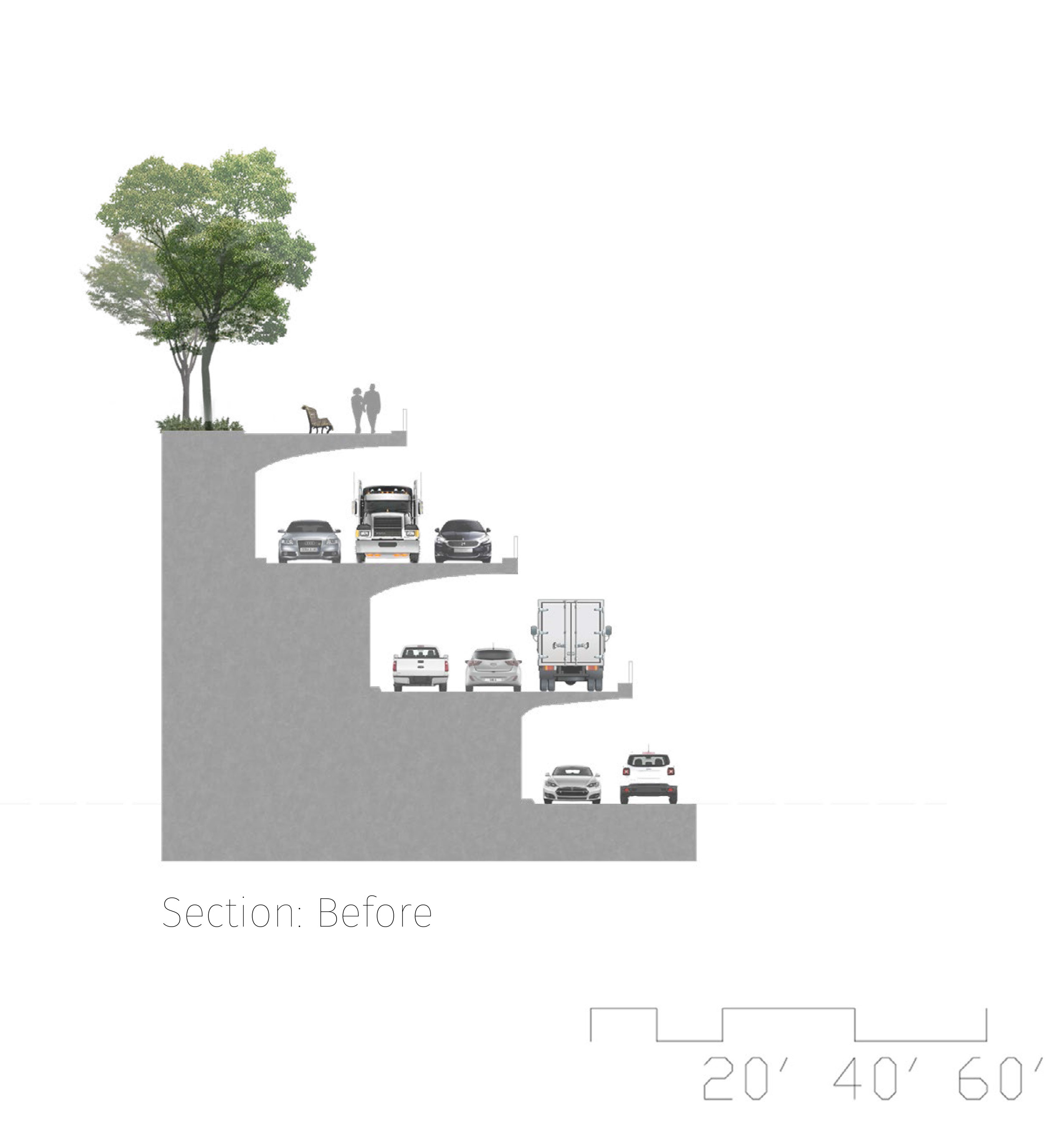 - Connect the new BQE to the ramps through the Brooklyn and Manhattan Bridges. Put the new BQE in a covered box in this segment as well and connect the North Heights to the Dog Park across the new covered BQE.